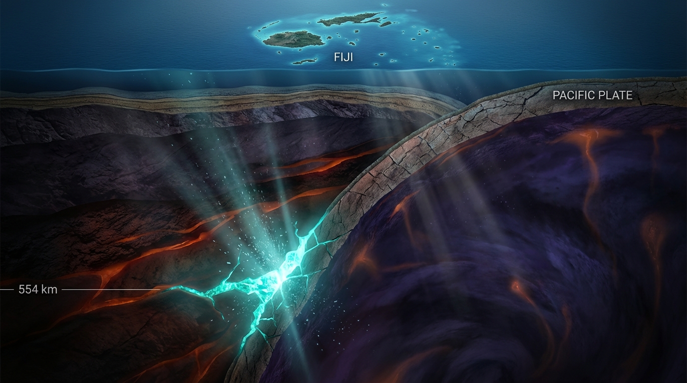 A rare magnitude 4.5 earthquake struck 538 kilometers beneath the South Pacific, revealing intense fracturing within the subducting Pacific Plate as it sinks into the mantle transition zone near Fiji.